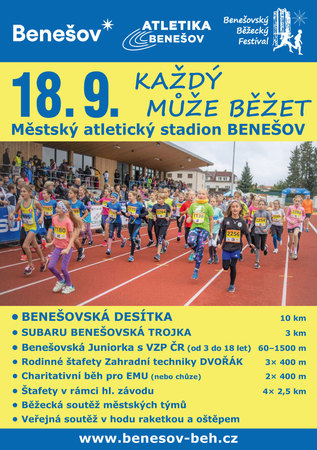 Již podeváté se předposlední zářijovou neděli na městském atletickém stadionu v Benešově uskuteční Benešovský Běžecký Festival. Cílem je povzbudit obyvatele napříč věkem k pohybu a zdravému životnímu stylu.